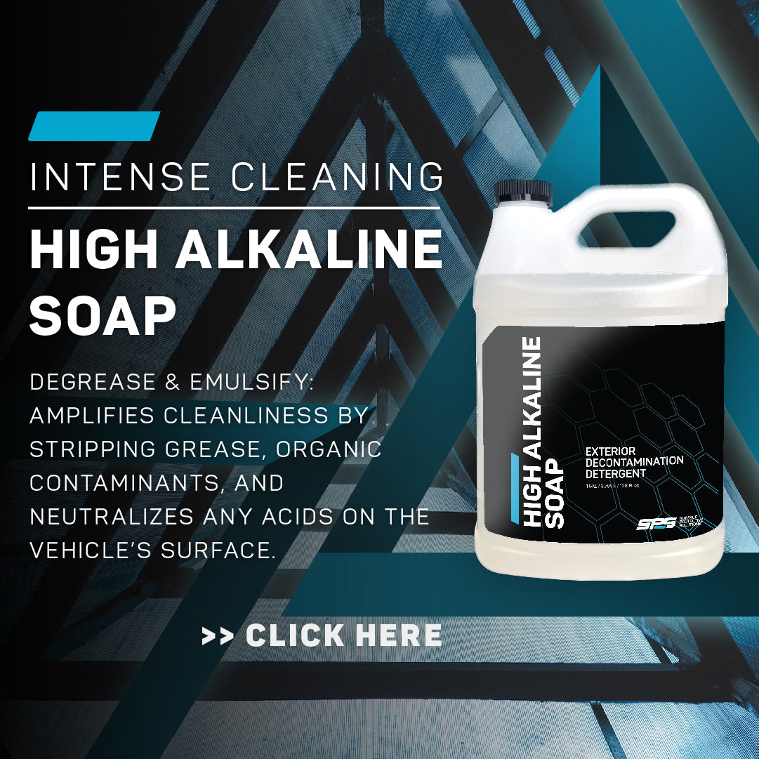 The SPS High Alkaline Soap is designed to offer powerful degreasing and deep-cleaning action. Our formula uses alkaline builders and surfactants to remove and emulsify organic material (bugs, bird droppings, oils and greases) while effectively neutralizing any acid that may be on the vehicle’s surface.