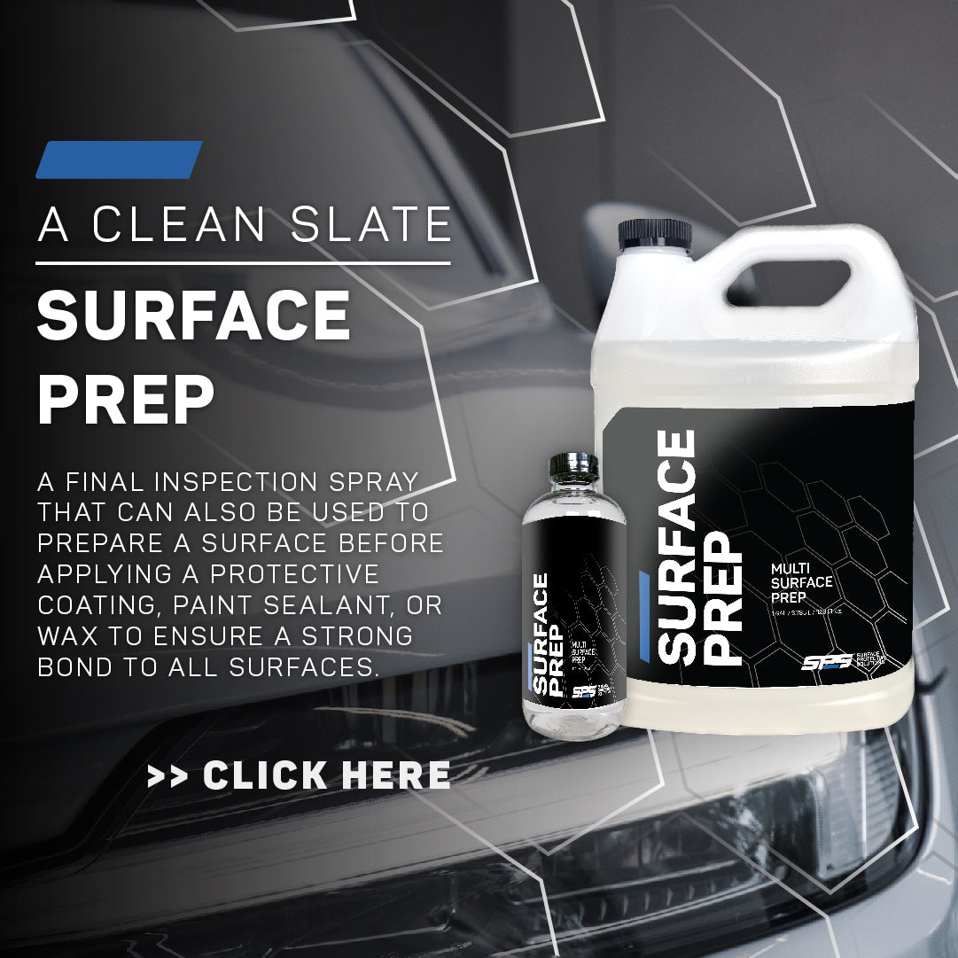 The SPS Surface Prep is designed to clean vehicle surfaces and effectively remove polishing residue, oils, fingerprints, dust, and other contaminants. It can function as a final inspection spray or to prepare a vehicle's surface for protective coatings, paint sealants, or waxes and ensure optimum application.